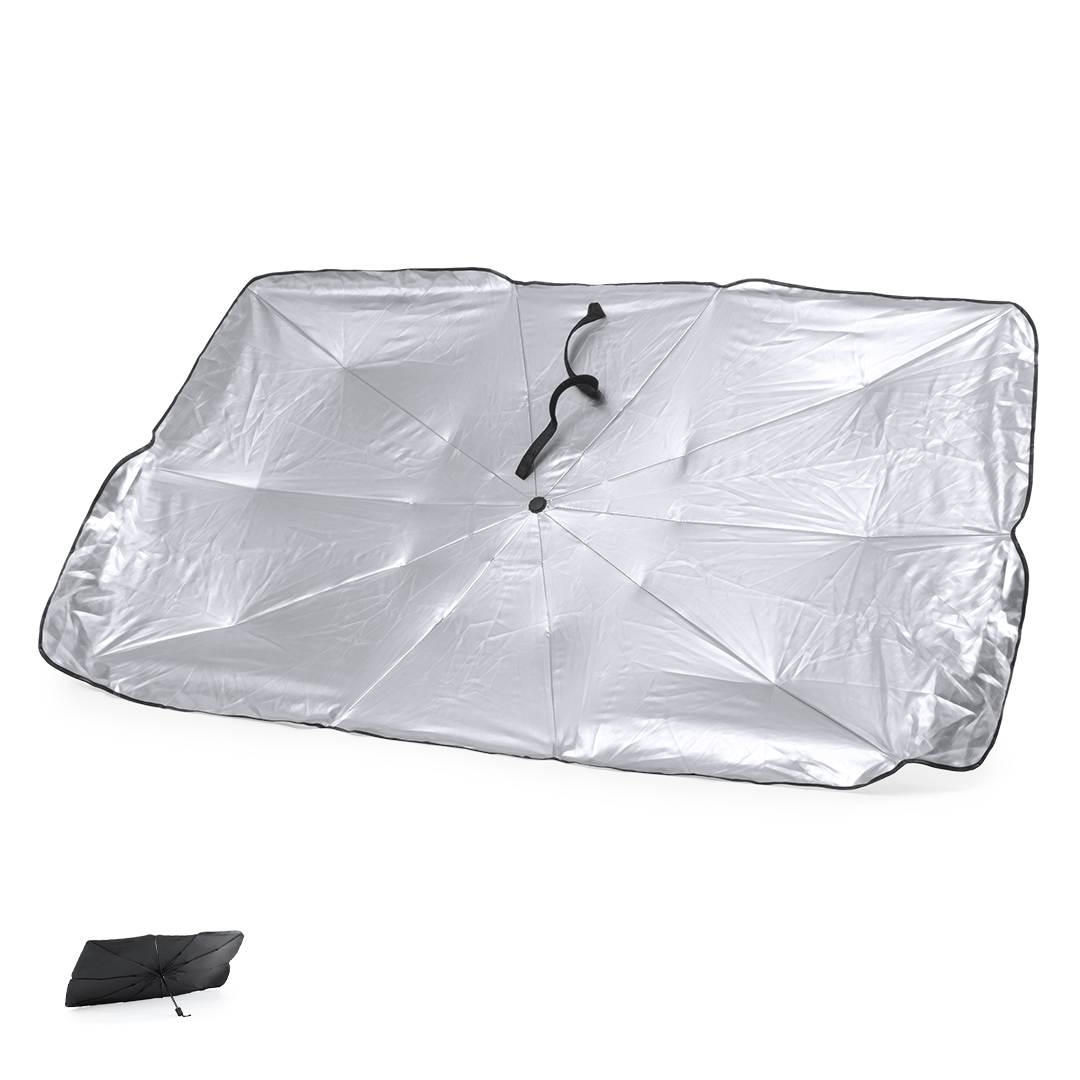 Parasol plegable para coche. Medida de 140x78cm. Con mecanismo de apertura manual y funda de políester incluida