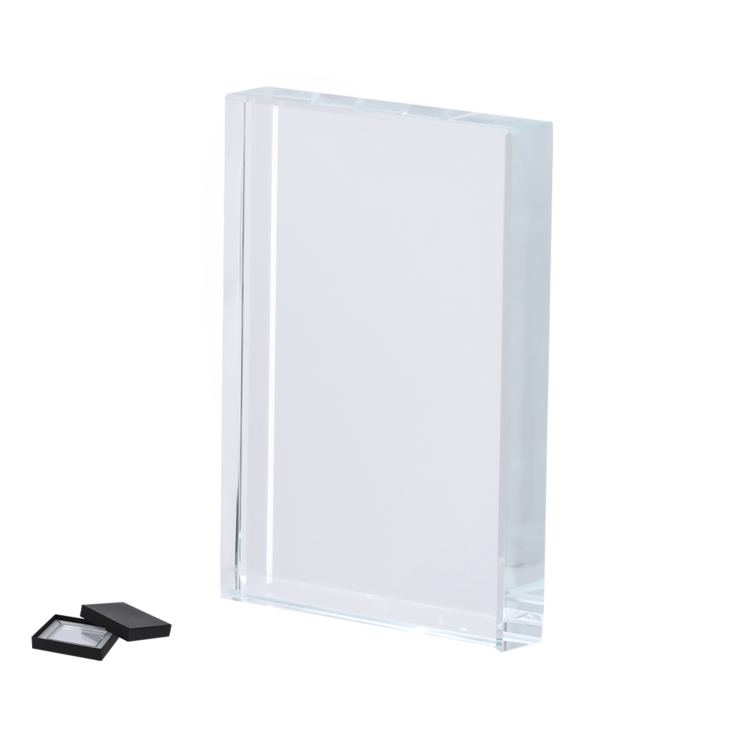 Elegante placa en cristal, con sofisticado diseño rectangular ,ideal para grabado láser. Presentada en estuche individual con cierre magnético e interior en distinguido color negro, aportando un toque distinguido.