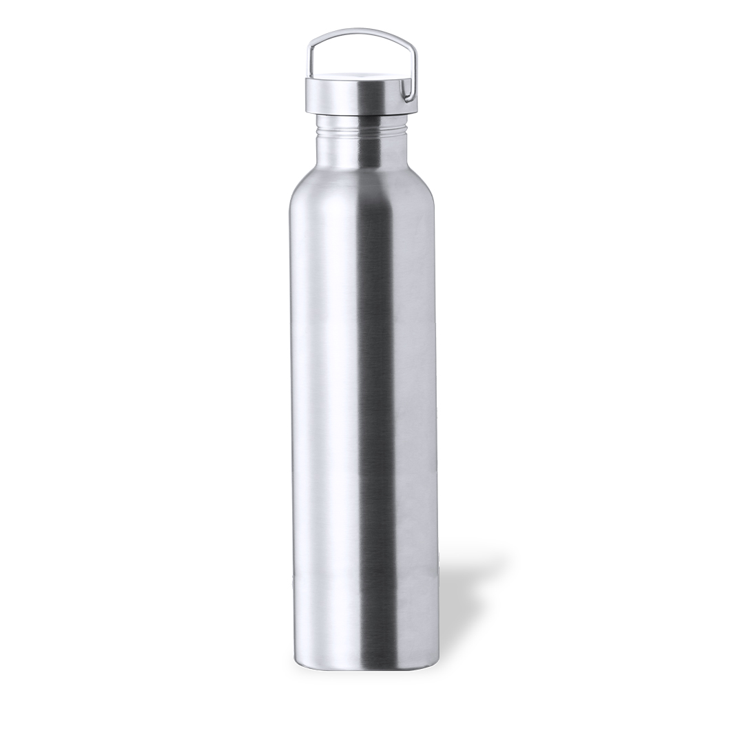 Bidón jumbo de 1,5 l de capacidad, fabricado en acero inox de acabado brillo. Con original tapón a rosca en acero inox, a juego y con asa integrada. Libre de BPA y presentado en caja individual de diseño kraft.Disponible manual de instrucciones en español e inglés.