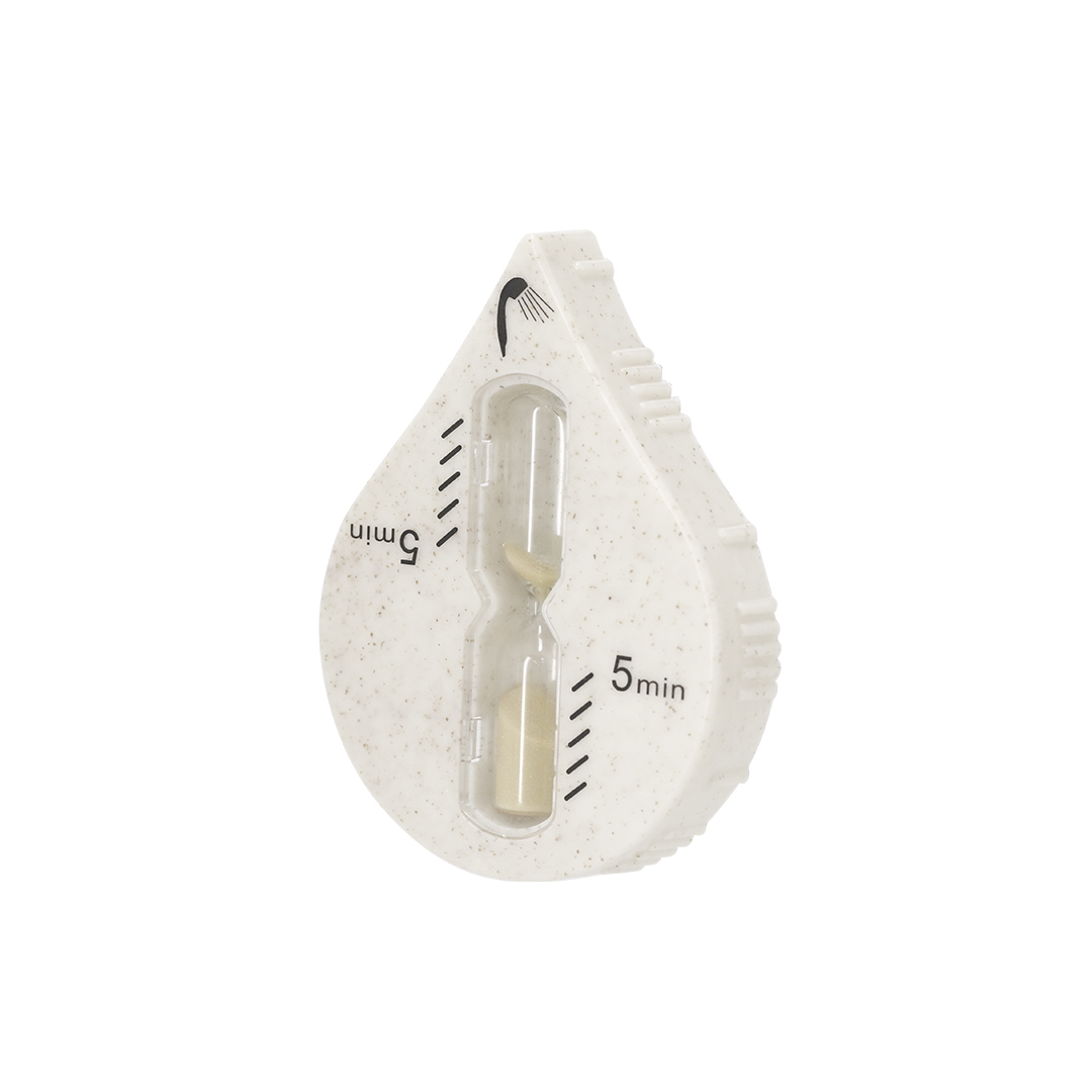Reloj de arena fabricado en caña de trigo con original forma de gota. Con 5 minutos de duración especialmente diseñado para medir el tiempo de duración de la ducha. Con ventosa de ajuste de alto poder de adherencia.La Caña de Trigo fomenta la utilización de materias primas naturales, reduciendo así las emisiones contaminantes.