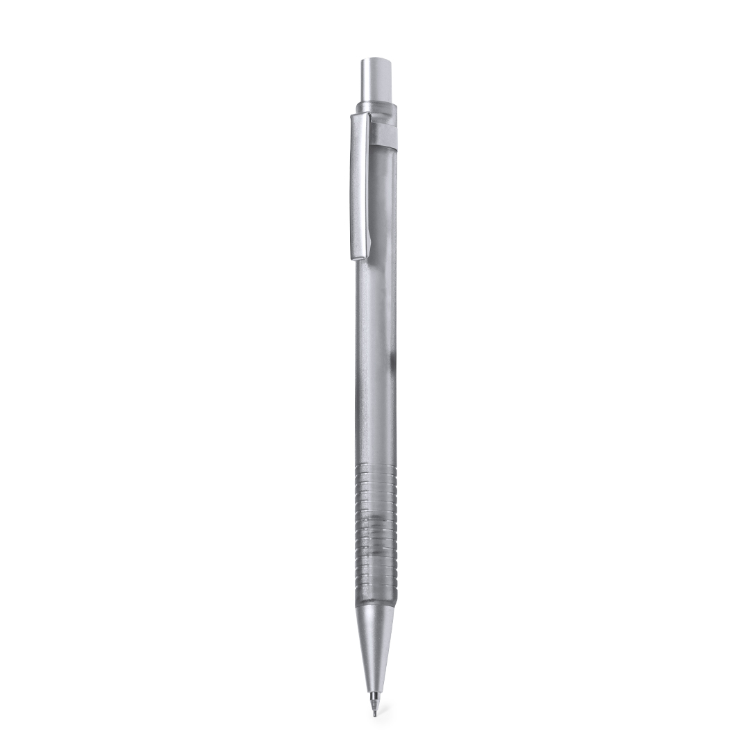 Elegante portaminas hecho en resistente ABS. Cuerpo en color gris translúcido y empuñadura a juego de tacto rugoso para un mejor agarre, con elementos cromados como botón, clip y punta. Con goma y minas incluidas de 0,7 mm.