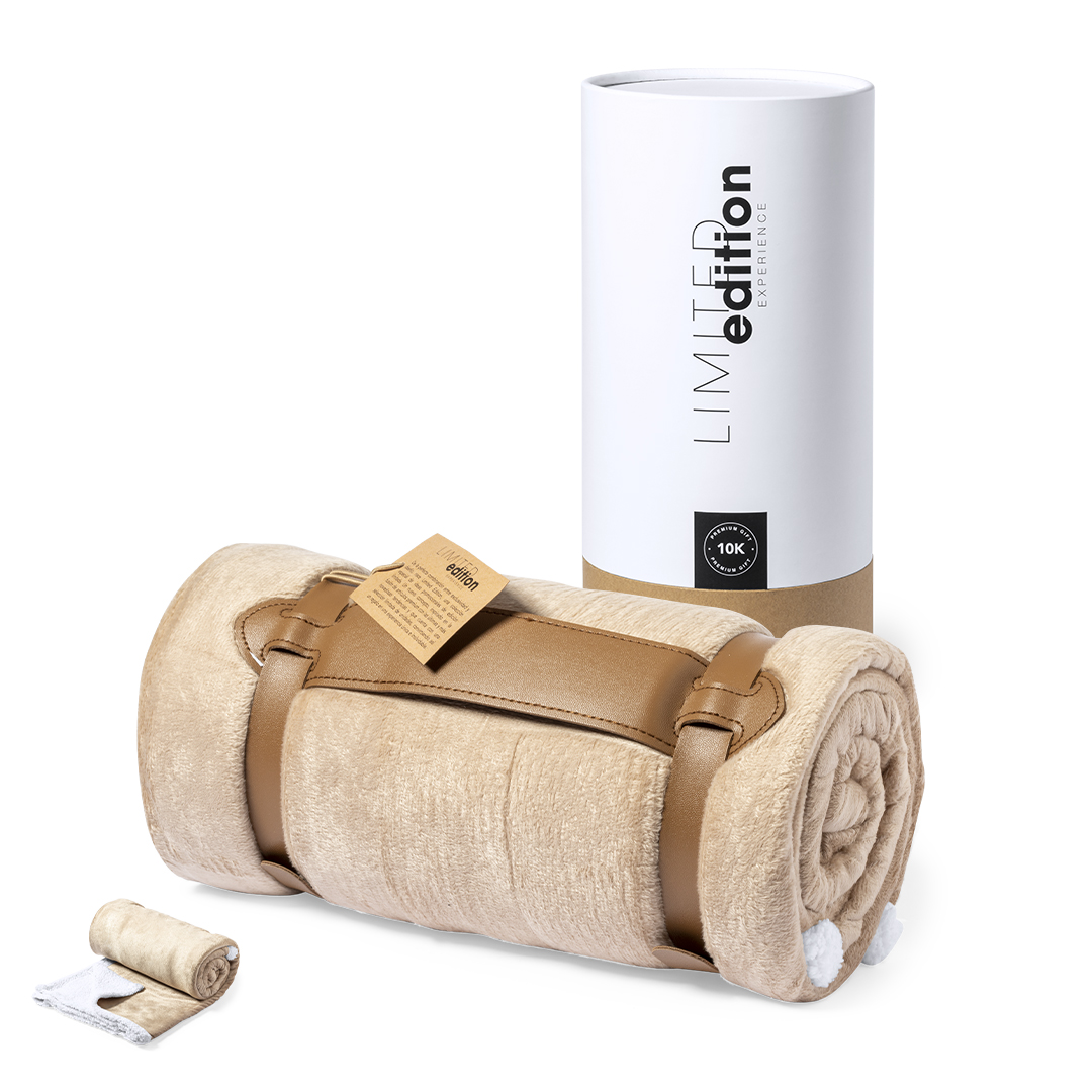 Manta de diseño exclusivo Limited Edition. En elegante diseño bicolor, con exterior en coral fleece tono camel e interior en suave borreguillo de color blanco. Fabricada en materiales premium (Coral Fleece y Sherpa 380g/m2), con cinta de transporte en polipiel de tono marrón.Presentación en estuche Limited Edition Experience, de diseño único y protegido por derechos de propiedad industrial. Incluida tarjeta en cartón reciclado con descripción Limited Edition.De la perfecta combinación entre exclusividad y diseño nace Limited Edition, una colección especial de ideas promocionales de edición limitada. Un nuevo concepto, inspirado en la fusión de artículos premium con las últimas tendencias, en tiradas de unidades limitadas, y ofreciendo una experiencia de regalo única, exclusiva e inolvidable.