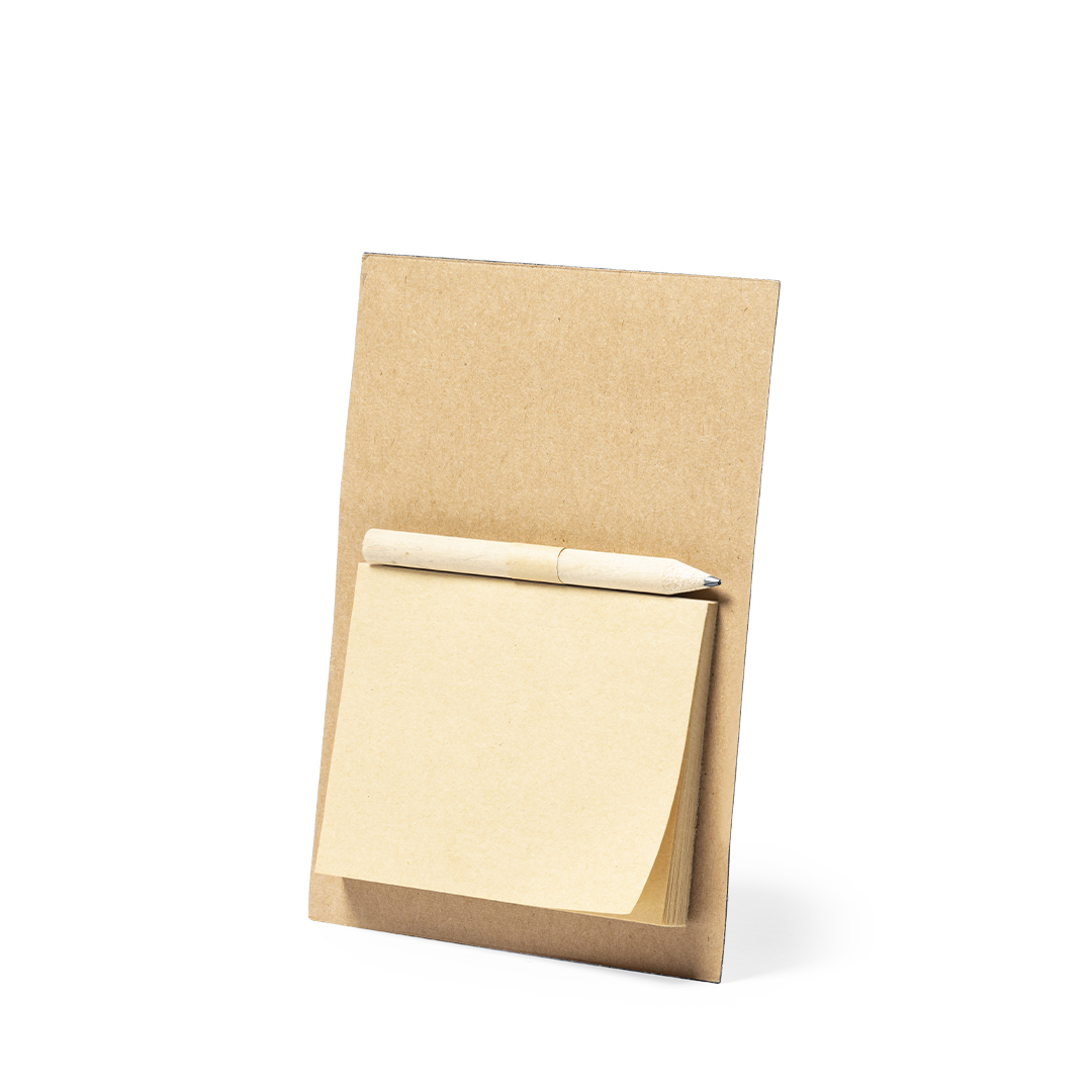 Imán para notas de línea nature. Fabricado en resistente papel reciclado, incluye minilápiz de madera y bloc de notas con 40 hojas lisas en color crema.