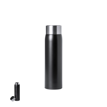 Bidón termo en Acero Inox Reciclado de 500 ml de capacidad. Con doble pared para mejor y más duradera conservación de la temperatura e interior con recubrimiento de cerámica, apto para bebidas carbonatadas. Tapón a rosca con sólida asa de trasporte en acero pulido. Con distintivo de Acero Inox Reciclado.El acero es uno de los materiales más demandados y que puede encontrarse casi en todas partes, desde productos de uso diario a grandes construcciones. Con innumerables propiedades, entre las que cabe destacar la durabilidad y su alto grado de reutilización, convirtiéndolo en una alternativa muy valorada en soluciones de sostenibilidad. Debidamente tratado, permite obtener nuevos recursos de infinita utilización.
