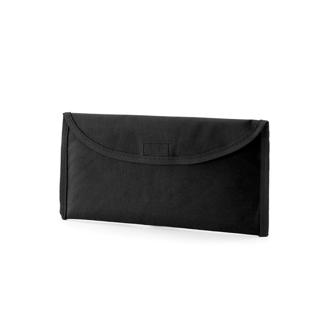 Portadocumentos de viaje en resistente poliéster 600D y en amplia gama de vivos colores. Con cierre de velcro, interior forrado y accesorio para cinturón en la parte trasera.