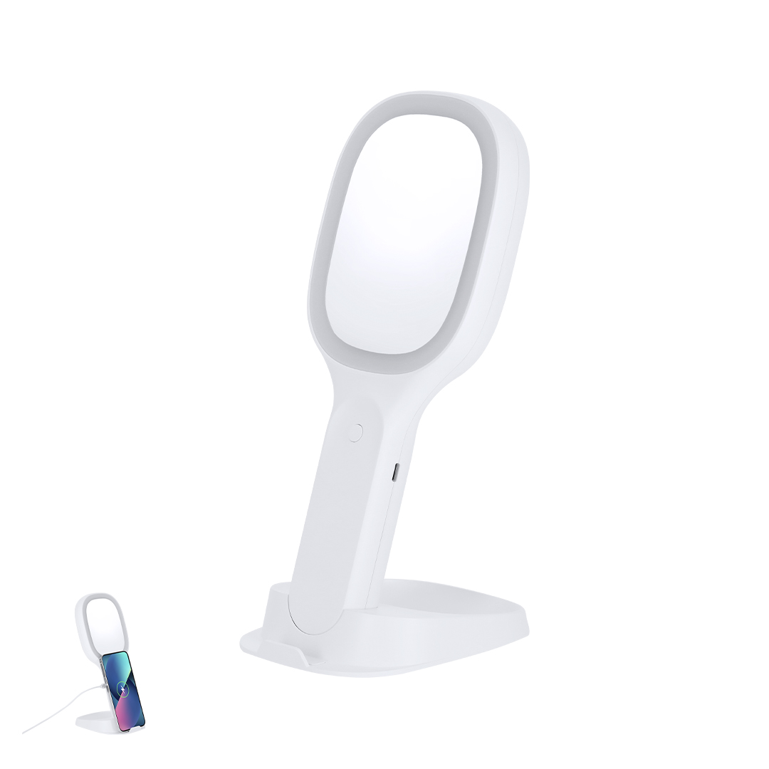 Espejo multifunción extraíble con versátiles funciones:- Espejo de aumento 1x por una cara y 5x por la otra.- Cargador inalámbrico de 15W.- Soporte para smartphone, permitiendo el uso del dispositivo mientras utilizas el espejo.- Luz con 3 intensidades: blanca, intermedia y cálida. Con 44 luces LEDs.- Compartimento para objetos pequeños.Fabricado conforme a los estándares RoHS y en cumplimiento con los siguientes requisitos de seguridad:Sistema de protección contra sobrecalentamiento. Sistema de protección contra sobrecarga. Sistema de bloqueo para evitar cortocircuitos.