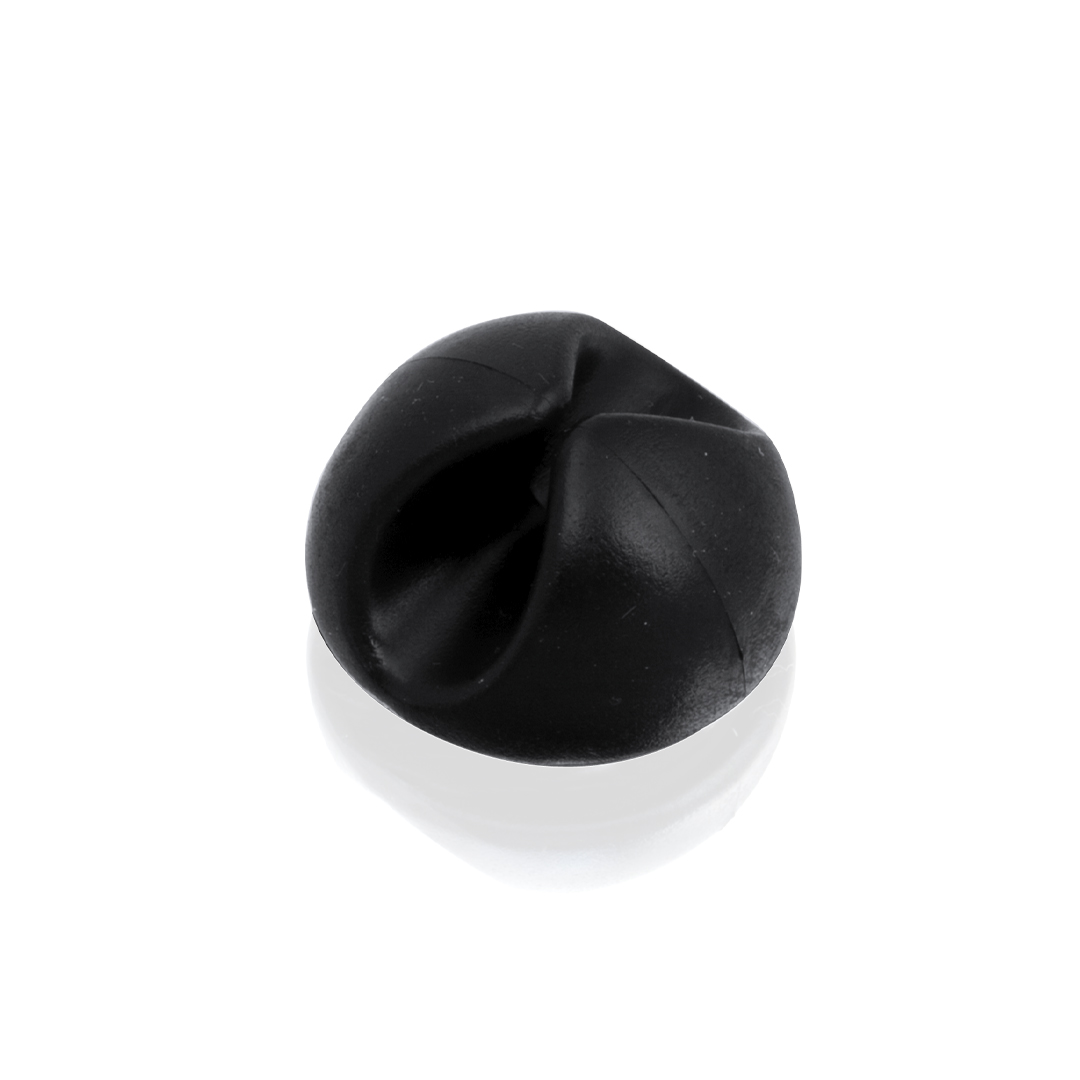 Soporte adhesivo multifunción en suave caucho. Válido como soporte para mascarillas, lanyards, soporte para cables… Disponible en acabados blanco y negro.