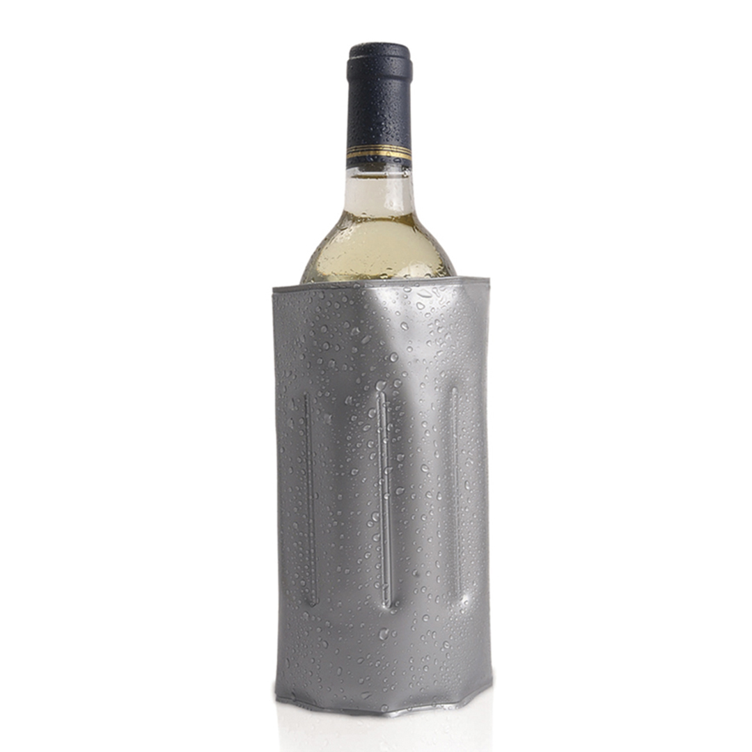 Enfriador para botellas fabricado en resistente PVC, con cierre ajustable de velcro. Líquido refrigerante interior y acabado termo sellado. Disponible en variada gama de colores.