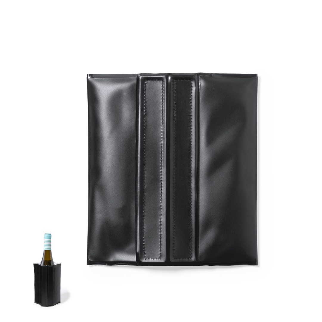 Enfriador con cierre ajustable de velcro, líquido refrigerante interior y fabricado en PVC negro mate.