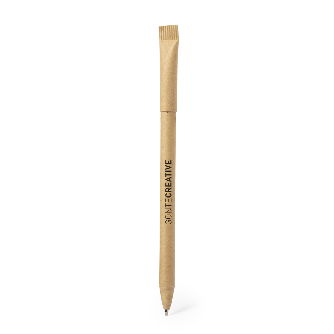 Bolígrafo de línea nature en cartón reciclado y original capucha a juego. Con tinta azul y disponible en variada gama de colores nature.